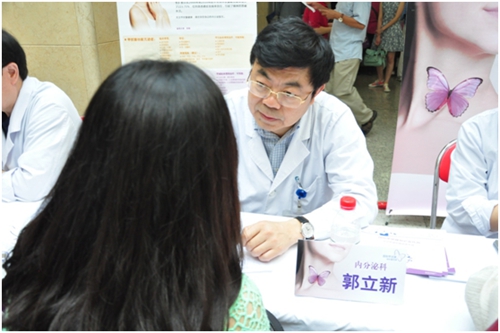 (內(nèi)分泌科主任醫(yī)師郭立新聽患者訴說病況。 人民網(wǎng)李軼群拍攝)