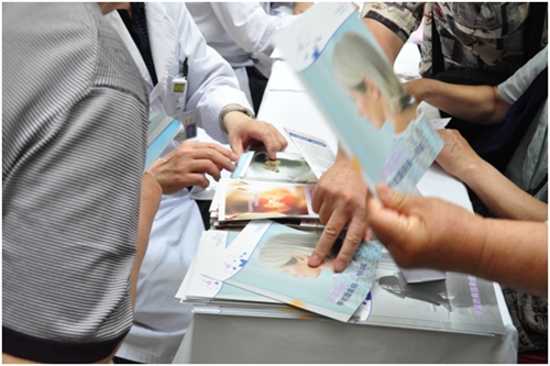 (義診現(xiàn)場市民翻看宣傳手冊 人民網(wǎng)李軼群拍攝)