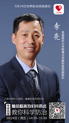 每年3月24日是世界防治結(jié)核病日。由人民日報社人民網(wǎng)、健康時報聯(lián)手打造的“人民好醫(yī)生”客戶端將邀請首都醫(yī)科大學(xué)附屬北京胸科醫(yī)院副院長李亮教授,于3月24日(周五)14:30-15:30進行視頻、圖文直播,在線解答關(guān)于肺病、結(jié)核病的治療和預(yù)防。