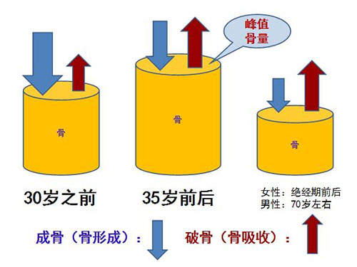 人一生的骨量是一個動態(tài)平衡的狀態(tài),在30歲之前時,體內(nèi)的骨量呈上升趨勢,35歲前后達(dá)到峰值,之后體內(nèi)的骨量開始不斷下滑。