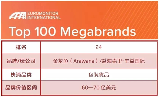 梳理榜單發(fā)現(xiàn),入選的中國品牌集中在包裝食品、軟飲料領(lǐng)域,包括國內(nèi)知名的牛奶、方便面、飲料、肉類品牌等。益海嘉里集團旗下的“金龍魚”是唯一入選榜單的糧油品牌,以60-70億美元(約合400-470億人民幣)的品牌價值估算位列第24名。