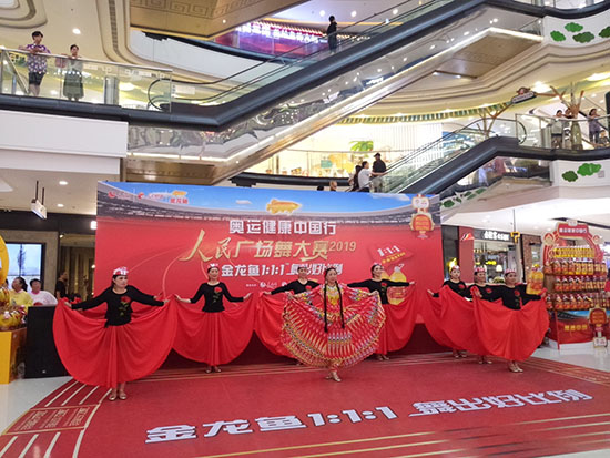 8月8日,由人民網(wǎng)人民健康、金龍魚黃金比例調(diào)和油聯(lián)合主辦的“金龍魚1:1:1舞出好比例”2019人民廣場舞大賽蘇州站在吳中萬達(dá)廣場火熱開賽。
