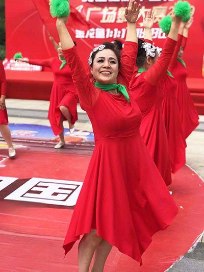 而另一支讓人印象深刻的舞隊(duì)是領(lǐng)舞苑阿姨帶領(lǐng)的鬼步舞隊(duì)。在賽前的熱身環(huán)節(jié)中,苑阿姨的異常活躍就吸引了不少觀眾的目光。到了自選舞比賽環(huán)節(jié),無(wú)論是苑阿姨的獨(dú)舞還是全隊(duì)的合舞,都贏得了全場(chǎng)觀眾的喝彩。“我是從2018年的1月份開(kāi)始跳廣場(chǎng)舞的。原來(lái)是跳軍舞和爵士舞,后來(lái)經(jīng)過(guò)考慮才選擇了更具動(dòng)感的鬼步舞。因?yàn)檫@種舞蹈在三分鐘之內(nèi)可達(dá)到普通人一天的活動(dòng)量,以前當(dāng)會(huì)計(jì)時(shí)每天下班會(huì)腰酸背疼,跳鬼步舞以后覺(jué)得一下子就有活力了。在舞隊(duì)中有一位隊(duì)員以前上樓都會(huì)喘,現(xiàn)在上樓對(duì)于她來(lái)說(shuō)根本不是問(wèn)題了!痹钒⒁陶J(rèn)為,跳廣場(chǎng)舞不僅可以鍛煉身體,還可以?shī)蕵?lè)心靈,做到身心健康才能不為子女添麻煩,更不會(huì)為祖國(guó)增加負(fù)擔(dān)。