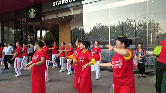 炎炎夏日,無(wú)論烈日灼陽(yáng)還是大雨滂沱都擋不住參賽者們?nèi)缁鸬臒崆。決賽之前,賽場(chǎng)外圍隨處可見認(rèn)真排練的阿姨們,而賽場(chǎng)之上,參賽舞隊(duì)們氣勢(shì)昂揚(yáng),各顯魅力,頻頻引起現(xiàn)場(chǎng)觀眾歡呼鼓掌。