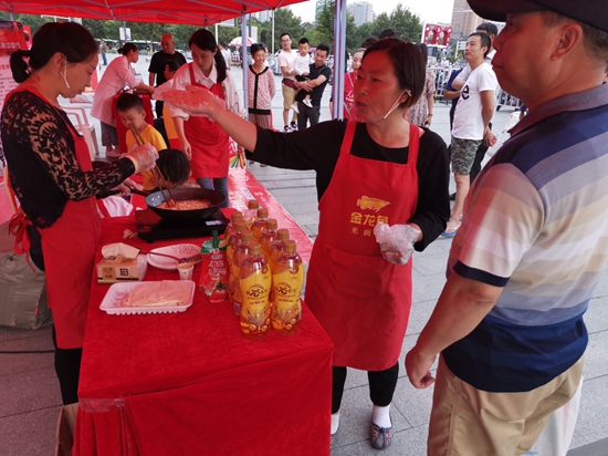 美食烹飪區(qū)域:工作人員在向路人普及用油知識(shí)