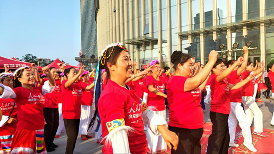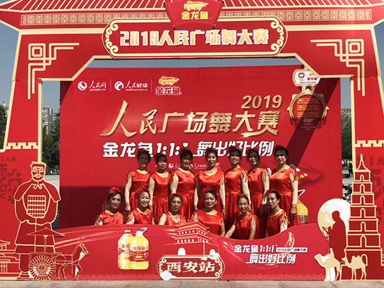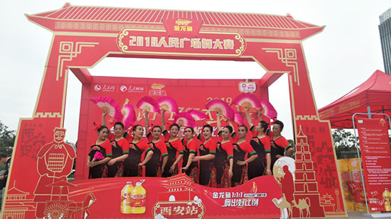 9月20日,由人民網(wǎng)·人民健康、金龍魚黃金比例調(diào)和油聯(lián)合主辦的“奧運(yùn)健康中國(guó)行·金龍魚1:1:1舞出好比例”2019人民廣場(chǎng)舞大賽西安站在西安大融城購(gòu)物中心廣場(chǎng)火熱開賽。