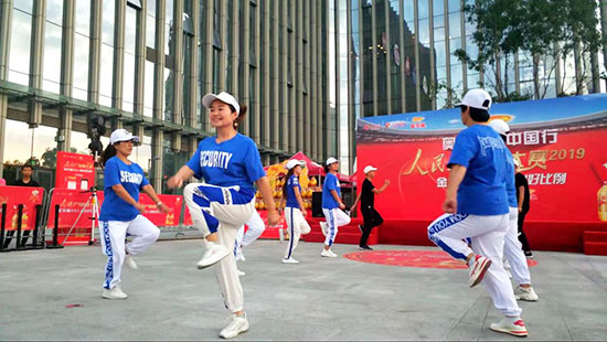 正值新中國(guó)成立70周年,本次西安站大賽以歌頌祖國(guó)為主題的舞蹈作品十分豐富。“星火燎原藝術(shù)團(tuán)”開場(chǎng)一支氣勢(shì)恢宏的《大中國(guó)》舞出了中華兒女的萬(wàn)丈豪情;“韓家灣舞蹈隊(duì)”編排的《好日子》別出心裁,用扇子擺出了“中70誕”的字樣,以此形式表達(dá)對(duì)人民過(guò)上好日子的欣喜,對(duì)祖國(guó)70周年華誕的祝福;“五彩繽紛柔力球隊(duì)”編排的《精彩中國(guó)五彩繽紛》則以極具新時(shí)代特色的柔力球舞蹈,舞出了健康中國(guó)新風(fēng)尚。