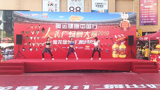 9月22日,由人民網(wǎng)·人民健康、金龍魚(yú)黃金比例調(diào)和油聯(lián)合主辦的“奧運(yùn)健康中國(guó)行·金龍魚(yú)1:1:1舞出好比例”2019人民廣場(chǎng)舞大賽廣州站決賽在廣東省廣州市黃埔區(qū)東方匯廣場(chǎng)舉行。
