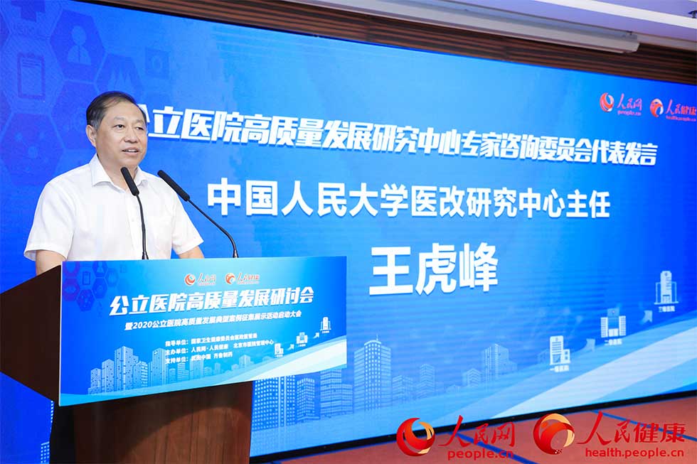 首批公立醫(yī)院高質量發(fā)展研究中心專家咨詢委員會成員代表中國人民大學醫(yī)改研究中心主任王虎峰發(fā)言