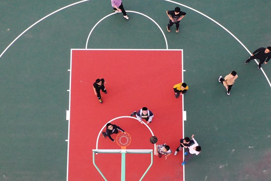 3月10日,在江蘇省錫山高級(jí)中學(xué),學(xué)生在打籃球。 新華社記者 季春鵬/攝