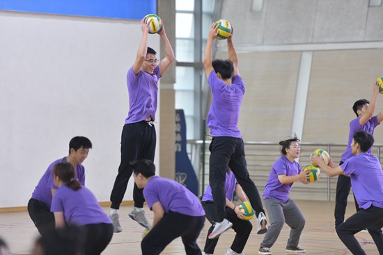 多校學(xué)生在華東師范大學(xué)體驗(yàn)中國健康體育課程模式下的排球課。受訪者供圖
