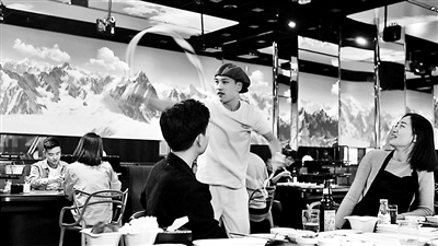 臨近中午,北京合生匯的湊湊火鍋店門口已經(jīng)排起了長龍。一對(duì)等待就餐的小情侶說:“賞雪景再吃頓火鍋,沒有什么比這更愜意的事情了!睖悳惡仙鷧R店丁店長介紹,受寒潮和初雪的影響,從周日下午客流量開始暴增,就餐人數(shù)比往常周末要多出50%以上,昨晚和今天中午排隊(duì)平均時(shí)間在60分鐘以上!敖裉斓降昃筒蜁r(shí)間明顯提前,不到中午11點(diǎn)半就開始客滿;用餐時(shí)間也明顯拉長,一直到下午3點(diǎn)店內(nèi)依然有不少顧客!