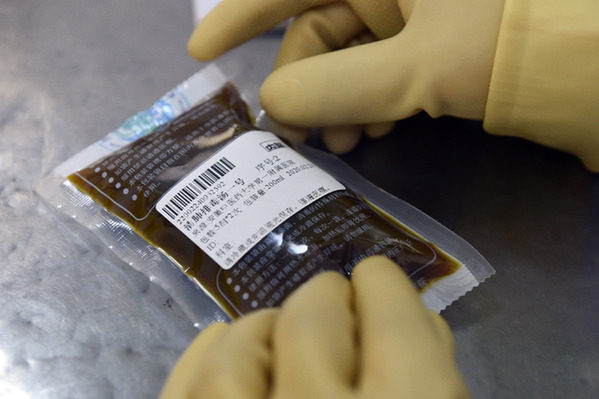 2月24日,中藥師在安徽中醫(yī)藥大學第一附屬醫(yī)院煎藥室為煎好的中藥湯劑貼標。新華社 周牧攝