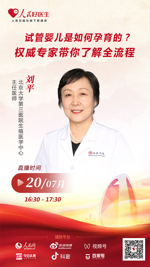 7月20日16:30,北京大學(xué)第三醫(yī)院生殖醫(yī)學(xué)中心主任醫(yī)師劉平將做客“人民好醫(yī)生”客戶端,為廣大網(wǎng)友科普輔助生殖技術(shù)相關(guān)知識。