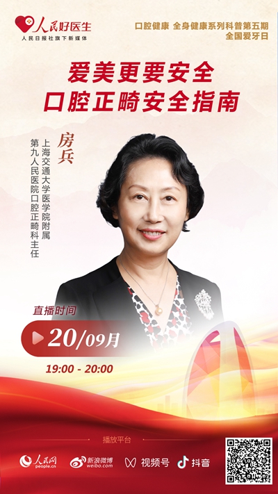 9月20日19:00-20:00,“人民好醫(yī)生”客戶端邀請上海交通大學醫(yī)學院附屬第九人民醫(yī)院口腔正畸科主任房兵做客人民好醫(yī)生,為大家詳細講解正畸風險控制相關(guān)問題。
