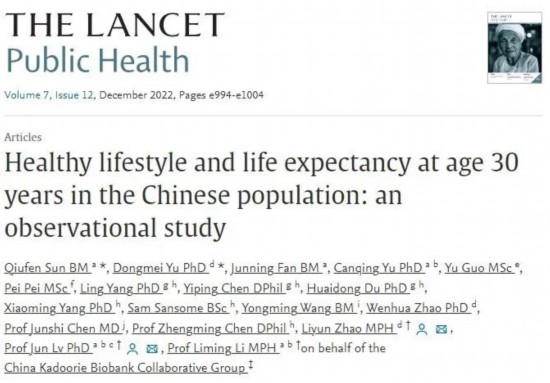 中國疾病預(yù)防控制中心營養(yǎng)與健康所趙麗云研究員團(tuán)隊(duì)與北京大學(xué)李立明教授團(tuán)隊(duì)在《柳葉刀-公共衛(wèi)生》(The Lancet Public Health)期刊上發(fā)表了一篇題為“Healthy lifestyle and life expectancy at age 30 years in the Chinese population: an observational study”[1] 的研究論文。該研究是第一項(xiàng)在中國人群中開展的多項(xiàng)生活方式因素與期望壽命之間關(guān)聯(lián)的綜合性研究。研究顯示,推廣健康生活方式可以降低心血管疾病、惡性腫瘤以及慢性呼吸系統(tǒng)疾病等重大疾病的死亡率,從而提高中國成年人的期望壽命。