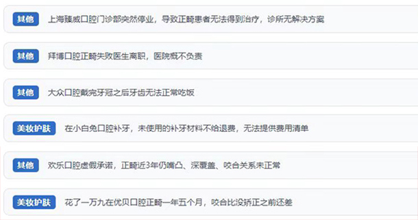 “花了1.9萬元正畸了一年五個月,到現(xiàn)在咬合比矯正前更差”“戴完牙冠后,牙齦一直出血導致我無法正常吃飯,機構不給解決問題”“我花了3000元補牙,包含材料費395元,補完牙后才得知并未使用該材料”……在人民網“人民投訴”平臺上,不少用戶道出了口腔治療消費的“心酸”經歷。