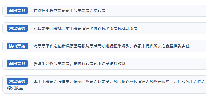 “人民投訴”數(shù)據(jù)監(jiān)測,近期有關觀影消費的投訴“水漲船高”。梳理發(fā)現(xiàn)網(wǎng)友反映的問題主要集中在: