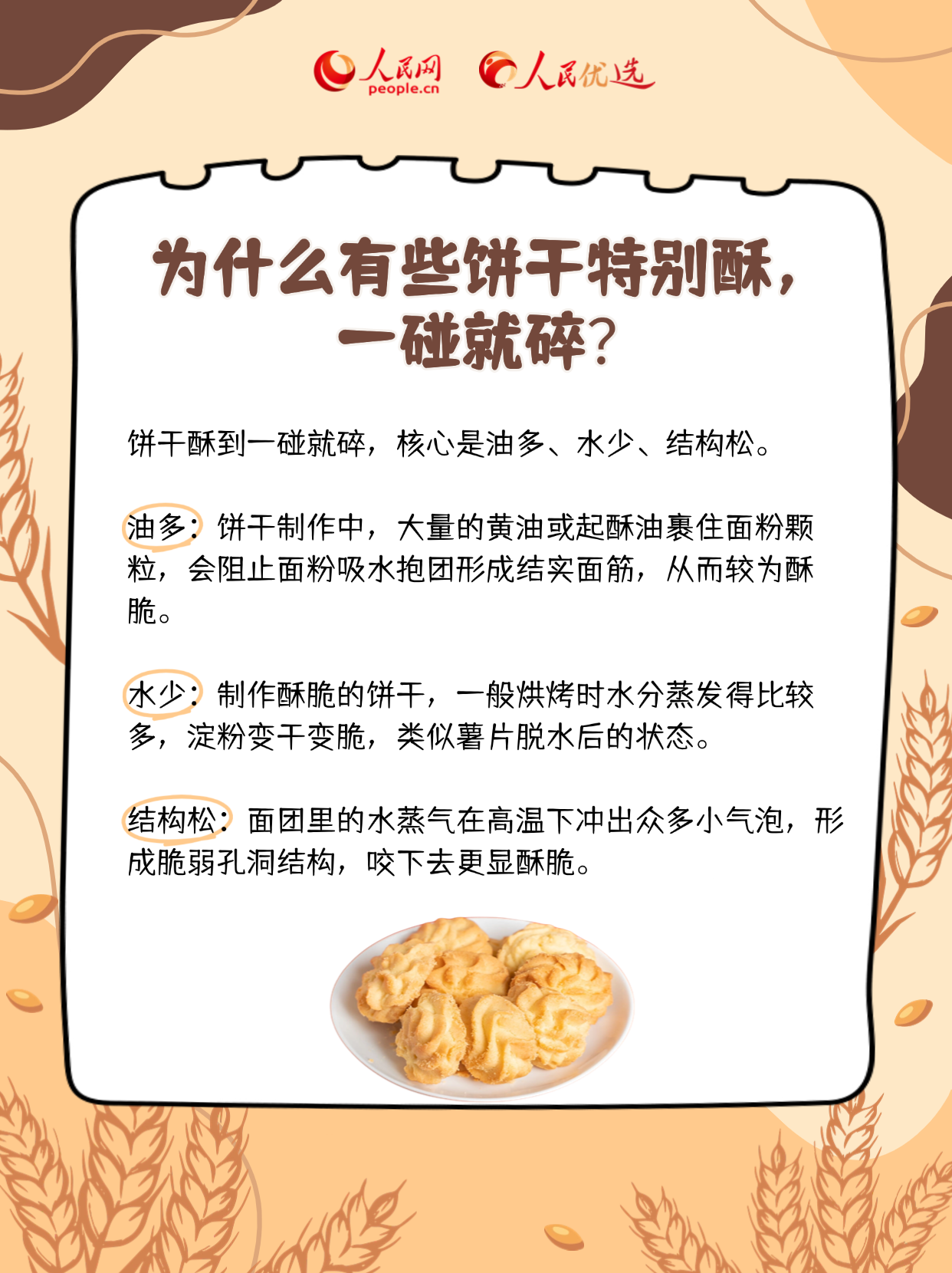無論是清晨配咖啡的消化餅干,還是午后的黃油曲奇,各類餅干總能在不經(jīng)意間撫慰我們的味蕾。但你是否好奇,各類餅干制作工藝有何不同?餅干放久不脆了怎么辦?哪類餅干相對更容易讓人發(fā)胖?跟著本期《人民優(yōu)選來了》,一起了解餅干的奇妙物語。